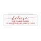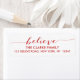 Simply Believe Script Overlay Red Holiday Greeting Card Return Address Labels. Elke Clarke© for MonogramGallery. Other colors available