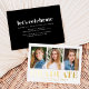 Stylish graduation party invitation featuring 3 photos framed in white with "Graduate" in bold, gold foil lettering. Personalize the front of the foil graduation party invite with the graduate's name, school name, and graduation year. The back of the invite displays your graduation party details below the phrase "let's celebrate" with a solid black background.