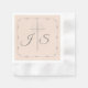 Design features the initials of bride and groom elegantly positioned on either side of a silver cross with wedding rings. Text and images are displayed within a lovely, delicate border. Background is champagne pink. Also available in white. Very formal and elegant. Designed to coordinate with the "Simply Catholic Wedding Suite."