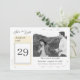 Design features the words, "Save the Date" in and elegant, silver font as heading to the left of design. Just below the image of a daily calendar with your wedding date is clearly displayed. Your photo is featured as main image on right of calendar. The day and date of wedding, names of couple and city of ceremony appear just below photo against a white backing. Reverse features a simple flourish in center. Very elegant. Designed to coordinate with the "Simply Catholic" Wedding Suite collection.