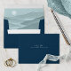 This eye-catching envelope design has an interior landscape in shades of dusty teal with an optional Prussian blue exterior. Bride and groom's initials and return address are featured on the reverse. As part of a chic wedding suite with a warm nature-inspired color palette and minimalist design, it has a timeless and sophisticated look that will impress your guests and help make your special day unforgettable. Search ID1046 to see all the products in this wedding suite.