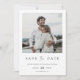 The background on the front is set as transparent to let the color of the paper simply serve as the base tone, but you can edit this and choose a specific color if you prefer. On the back, we've chosen a background color called White Smoke, it's a very light gray that's mostly white. You can also change this if you'd like. We've added some sample text on the back in all lower case in a very dark gray that's mostly black. Instead of entering your own wedding website address, you might decide to enter a different sort of message there instead. You can also change the font, text color or use some upper case, etc. Of course you can also simply delete all of our sample text on the back and leave that side of the card totally blank, perhaps to hand write your own message later, or to send without any text on the back. The default paper type, matte, has a soft warmth to it and resists smudging, so it's a great choice for writing your own message. You can edit this and choose semi-gloss or another paper type instead. In any case, please do remember to delete all of our sample text on both sides as well as our sample photo. We hope you'll enjoy experimenting with this clean, contemporary template design and make it uniquely yours with the intuitive design tools, your favorite photo and your inspiration. We have variations of this design with a different save the date font along with a selection of other modern minimalist save the date cards, so please have a look!