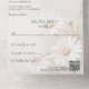 Capture the rustic charm and timeless elegance of your upcoming wedding with this exquisite country daisy All-in-One wedding invitation. This carefully crafted invitation combines convenience with a simple watercolor country daisy design to create an unforgettable first impression for your guests. The All-in-One wedding invitations are both beautiful and practical by combining the wedding invitation with an easy to remove perforated RSVP postcard. They are also quick and easy to prepare for mailing. Simply address the invitation, fold the back flap and seal with the included clear stickers. Once your guests receive the pre-addressed invitation they simply tear off the perforated RSVP card and drop it in the mail. The addition of the QR code allows your guests to easily access your wedding website for information including reception details and dinner choices!