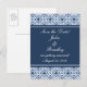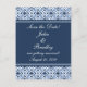 Simply Dazzling Damask Save the Date Postcard in dark blue featuring a decorative flourish pattern background with delicate stripes at the borders. This stylish save the date postcard would be great for the modern bride. Easy to customize, simply fill in the details of your big day in the text fields provided. Click on the "Customize It" button where you will find a variety of other personalization options.