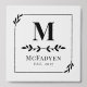 Black and white monogrammed peel and stick wall tile with an elegant greenery frame and greenery divider. White peel and stick wall tile personalized with your initial, last name, and year established in black with greenery details. Give your walls a personal touch with these peel and stick wall tile personalized with your monogram and name with simple greenery details.