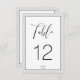 Beautiful in it's simplicity, the pieces in this wedding suite feature modern, hand-written script accents and a classic black and white color palette that can easily be changed to suit your preferences. A subtle geometric border highlights this table number card along with the bride and groom's initials. Search ID523 to see all the pieces in this elegant set.