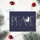 These 5.6" x 4.25" holiday postcards feature the greeting, "Peace" in large letters in shades of blue with the message, "Wishing you peace, love & joy this holiday season." Simply add your name(s) & year. The back has placeholders for the senders address.