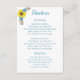 Your guests will find their way using these simple to customize directions enclosure card. The top left hand corner features a sunflower floral graphic with "Directions" written at the top in the middle using blue cursive font. Underneath is a template for inserting your ceremony and reception details. Personalize this enclosure card today!