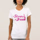The material is a great quality that is hard to find with most tee shirts. Fabric was not see-through or thin at all, but was also very soft and comfortable. The shirt description states that it runs a little small, so I sized up one size for a perfect fit! I would definitely buy this type of tee shirt again because I love the fit and high quality fabric that I cannot find anywhere else. The printing was perfect and just as pictured. Loved the cute quote and really enjoy the tee in both the quality and design. I love quirky typography designs and funny quotes and I am extremely pleased with the overall quality and value I get at Zazzle!