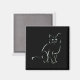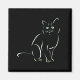 A simple white sketch, line art, of a sitting cat on black. A black and white cat design with utterly plain elegance.