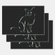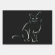 A simple white sketch, line art, of a sitting cat on black. A black and white cat design with utterly plain elegance.