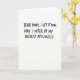This card keeps the focus on a single message, set on a wide white background with lots of open space. Centered on the front is a three-part note in slightly uneven black lettering that feels like it was written quickly but carefully, as if someone finally found the courage to say it ❤️. The lines read, “DEAR MOM, I GET IT NOW.” followed by “MAY I OFFER UP MY DEEPEST APOLOGIES.” with each line stacked and aligned to sit neatly in the middle. The dark text stands out sharply against the bright white field, giving the words the kind of quiet intensity you’d share in a private moment. With no illustrations or extra decoration, the emptiness around the message acts like a pause, letting the apology land gently and sincerely. The lettering has small natural variations in thickness and spacing, like a real note passed from one person to another 🌼. The message appears in all-capital black text, centered both horizontally and vertically on a plain white front.