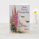 With sincere sympathy on the front of this vintage image card. Colorful cowbell flowers, birds, a white picket fence, and a house. A watercolor design. The inside card has a condolence quote image by the late William Wordsworth. This card is customizable by changing any of the pictures, and adding your images and text. Or keep this as it is.