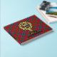 Clan Sinclair crest badge surrounded by a strap and buckle over red tartan background. Custom front, back and spine text.