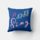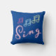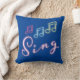 Sing Neon Music Notes on Blue Throw Pillow