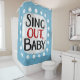 "Sing Out, Baby" is a cute text design in light blue with black and red text, along with a white accent shape and white textured whimsical dots surrounding it.
