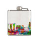 Well made flask, a little better than I had expected. Flask came in clear plastic box which gave it a nice presentation when I took it out of the zazzle packaging. Image is not printed on flask but on sticker. Don't know how this will hold up I haven't used it yet. This would make a Great gift! I plan to purchase more for friends! Cheers. I thought a little brighter than computer. Very crisp, writing wasn't