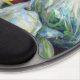 The plastic backing is nice and sturdy. The grippy pads underneath keep the mouse pad where I put it on my table. The pad the mouse sits on is cut well to fit the backing. The wrist pad is perfectly soft, supportive, and thick. I'm left-handed, and this mouse pad works just as well for me as it does for my right-handed friends. I'm the designer of HippieClecticHope products. I'm blown away by how well my intricate fractals turn out on the tangible items in the Zazzle Marketplace. This particular mouse pad ***appears*** like a 3D object... A mathematically-engineered rainbow black opal, inlaid under transparent fabric...