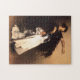 Singer Sargent Spanish Dancer puzzle. Oil painting on canvas from 1879-82. American painter John Singer Sargent travelled the world painting masterful portraits and landscapes. Spanish Dancer is one of his most visually dynamic paintings, depicting a young Spanish woman in a black blouse and white skirt dancing before an empty tan background. A beautiful gift for fans of John Singer Sargent, dance paintings, Spanish dancers, and American art.