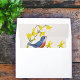 This liner for your envelopes for party invitations, greeting cards, or any occasion has a singing blue and red bird sitting on a branch with bright yellow flowers on a white background.