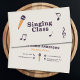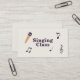 A business card for singing class with illustrations of a microphone, treble clef and music notes on a siege background. The back comes with fully customizable contact information decorated by icons. Ideal for music lessons, singing teachers, vocal coaches, musicians, and more.