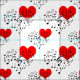 Singing Heart Pattern. Red Hearts, Black Notes Fabric
