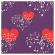 A seamless pattern of heart-shaped musical notes of white color above the red heart against the violet or purple color background. Love, music, romantic design "The Singing Heart" for anyone. You can change the tiling pattern, size, and angle of rotation. Just be creative, use this beautiful fabric for any of your projects and be happy!