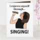Singing I Express Myself Through Singing Card original design by Nisha Prabhu. Discover the magic of self-expression with our "I Express Myself Through Singing" card! Perfect for musicians, singers, and anyone who believes in the power of melody, this vibrant design captures the joy and freedom of expressing one’s feelings through song. Whether you’re sending a heartfelt message to a friend or celebrating a special occasion, this card is a delightful way to share your passion for music. Perfect for any occasion.