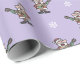 A pattern of snowflakes and guitar strumming, song singing Santas decorate this Christmas wrapping paper.