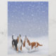Original fine art design of howling Basset hounds in the snow by illustrator Carolyn McFann on quality greeting cards, invitations and stationery for dog lovers.