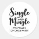 Single and ready to mingle divorce party stickers and sealers. Black and white script typography design. Custom text with stylish hand lettering for divorced women and single ladies. Personalize with your own names. Fun accessories for girls weekend, trip, gathering, meeting, date night etc.