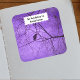 This square sticker bookplate label has a single black silhouette crow standing on black tree branches against a deep purple sky. Customise your text with the templates in the wavy white banner.