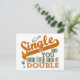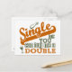 "Single - but you can buy me a double". Add your own text on the backside, if you wish. See my store for more items with, and color choices of, this design.