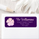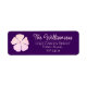 This return address label features a single pink Lavater flower bloom on a purple background with the name in a pretty scripted font, and the address in a nice clear type font.