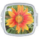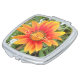 Bright, single, orange spring flower on personalized compact mirror.