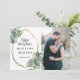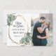 Looking for a unique photo save the date card? Look at this! This product features a single photo with geomteric gold and eucalyptus frame.