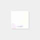 This sticky note pad features a faded digital painting of a single Lavatera flower bloom and purple personalized name at the bottom edge in a scripted font.