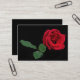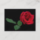 This elegant Artist Trading Card features an exquisite single scarlet red rose with three green leaves against a black background.