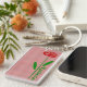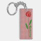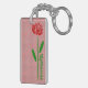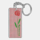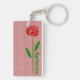 Single Red Rose Green Stem Leaves Customize Name Keychain