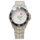 Has heft and feel of expensive stainless steel quartz watches. Good band with safety catch. I removed links, which is easy because engraved arrows show direction to push the linking pins. As always by this seller, the image (a railroad logo) is a perfect reproduction of my emailed image, and is precisely spaced and aligned.