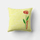 Personalized throw pillow with a lovely red rose with green stem and green leaves. Place for your name to personalize your throw pillow. Resembles an art deco look. Background colors are light green on the front, with a fractal look. The back has a yellow background with the same, fractal. That makes the pillow reversible. Lovely Mother's Day gift.