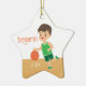 Personalize this cute basketball ornament for the basketball player in your life! This ornament features a brunette boy dribbling a basketball on a basketball court. Also available in other colors for extra customization.