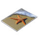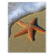 Striking beach photography, a bright orange starfish on the waters edge about to be covered by a gentle wave.