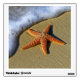 Striking beach photography, a bright orange starfish on the waters edge about to be covered by a gentle wave.
