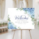 Welcome your guests in style with this Blue Hydrangea Welcome Poster! Designed in a horizontal layout, this elegant sign features soft watercolor hydrangeas in beautiful blue hues, adding a charming floral touch to your wedding or special event. Perfect for greeting guests at the entrance and creating a warm, inviting atmosphere.