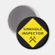 Sinkhole Inspector - black magnet with yellow diamond warning sign style design and crossed rock hammers graphic.