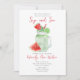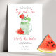 "one in a melon" sip and see for new baby featuring illustration of a watermelon smoothie in a mason jar garnished with watermelon slices and lime.