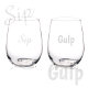 Fun Typography, a delicate"Sip" and a bold "Gulp" etched on stemless wine glasses in a humorous and timeless gift for any couple of Wine Lovers! The glasses may be personalized with Monograms or a "His or Hers".