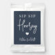 Get the party started with these cute margarita drink mix packet. Design features "sip sip hooray" along with a heart and your event name in white lettering on a navy blue background. Perfect for bachelorette parties, girls weekends and more.