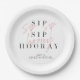 Sip Sip Hooray Black White Pink Engagement Party Paper Plates